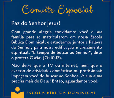 Encontre modelos modernos de convites para a Classe dos Jovens. Perfeitos para eventos e celebrações especiais na EBD.